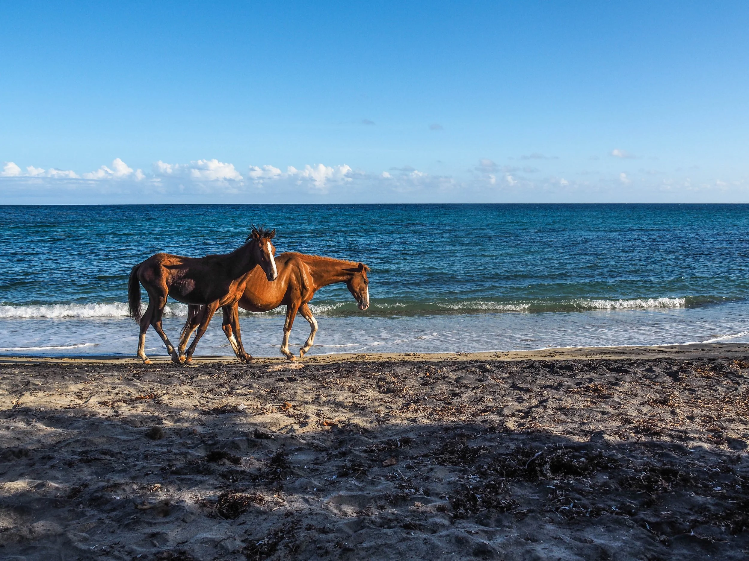 Wild horses roam free on Playa Negra (Black Beach) in Vieques